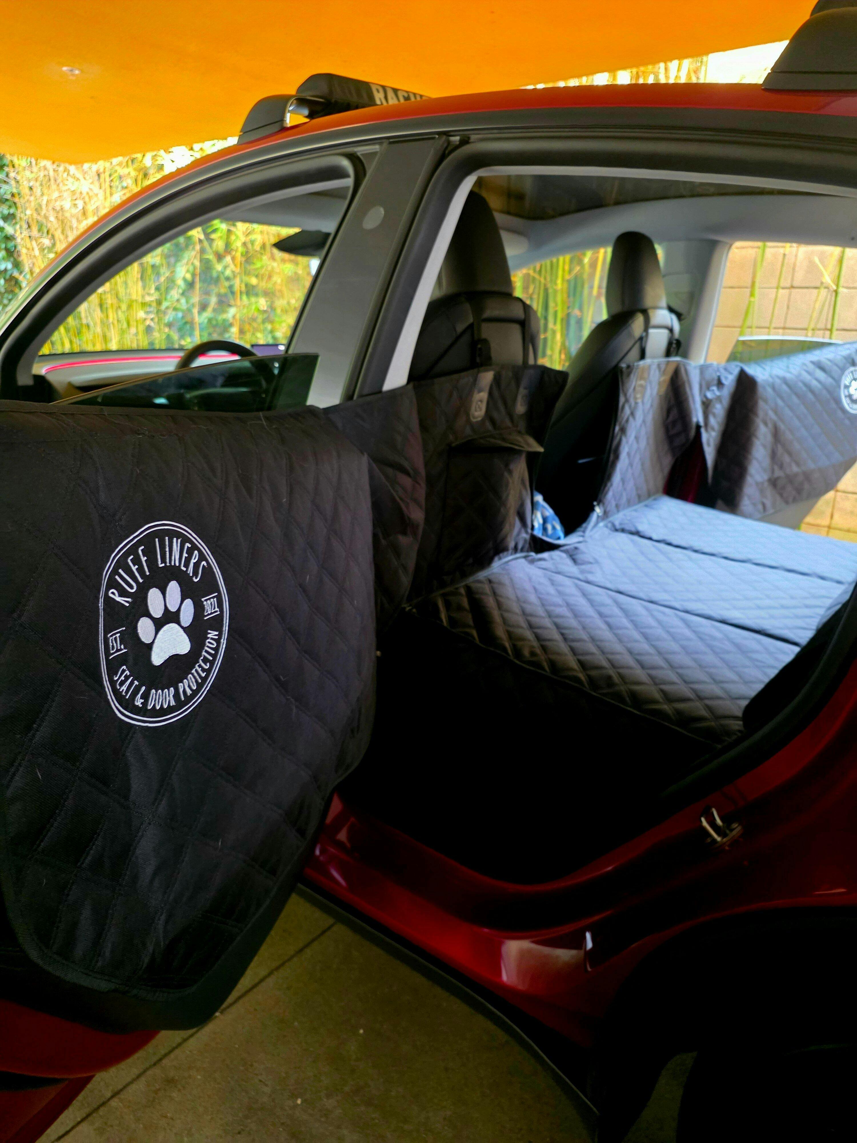 - The Pet Dog Trunk Cargo Liner for Tesla Model Y is made from premium quality materials, specifically designed for the Tesla Model Y to protect your interior from pet hair, dirt, and moisture. Keep your car clean and mess-free on your travels with your furry friend.