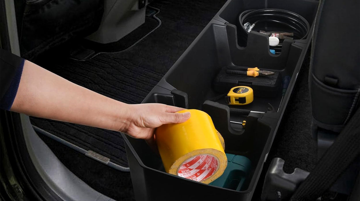 - Maximize Storage: Eliminate clutter and make the most of your space with our innovative 2-in-1 design. This under-seat storage bin includes two additional compartments for easy organization and quick access. Store power tools, ropes, belts, sports gear, first aid kits, snow brushes, and more - keeping your Tesla tidy and essentials within reach.